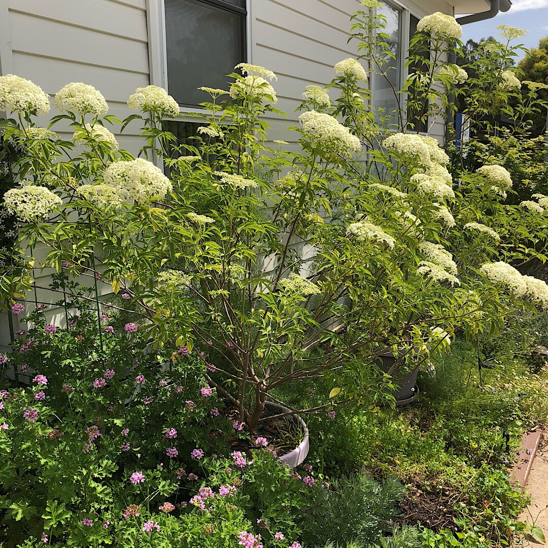 Here are the elderberries in full bloom as mentioned in “Just A Leaf”.