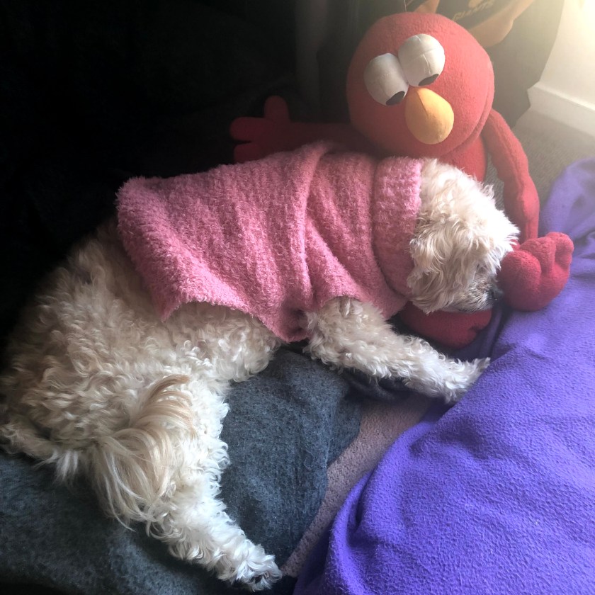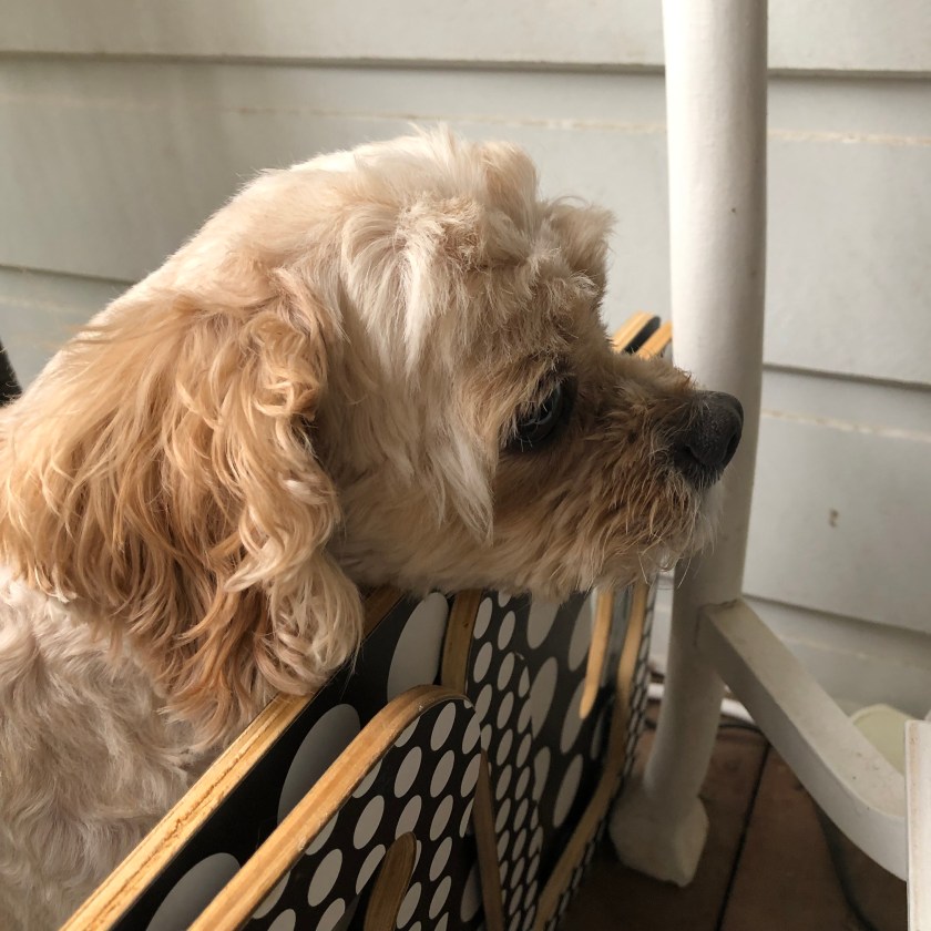 - her big ferocious, but belated, yelping at the window to just back up Daisy’s milder barking at a passerby,