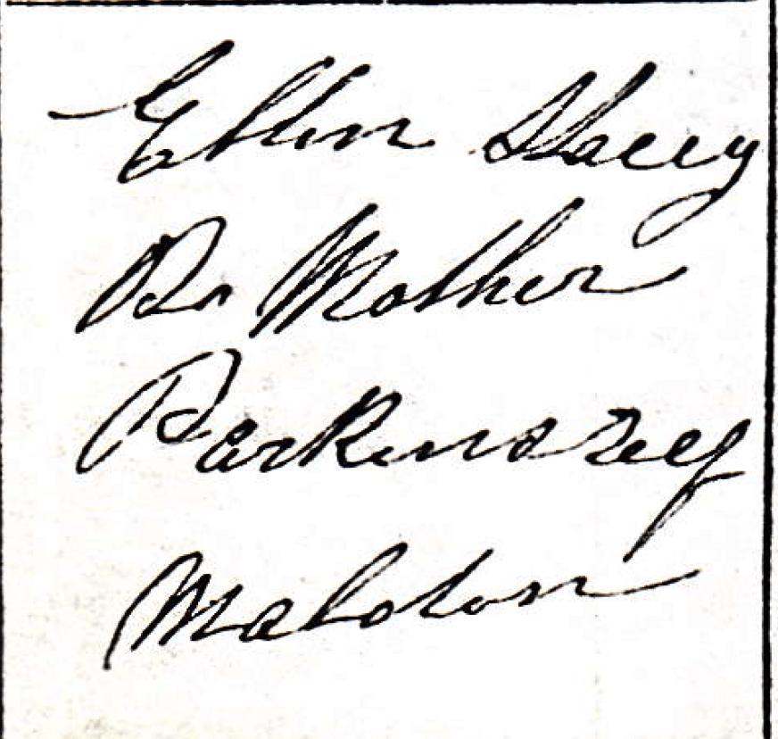 Amusingly, on Albert Francis’ birth certificate, in the column headed Informant, signature, description, address was written “Ellen Stacey”, “Da Mother“, “Parkins Reef, Maldon”, a very literal rendering of Ellen’s Irish brogue description written by the registrar as the handwriting is consistent across the page. I suspect Ellen could not write which was probably not unusual for a girl from County Limerick in Ireland in those days. Here is a copy of this section of the entry, what do you think?