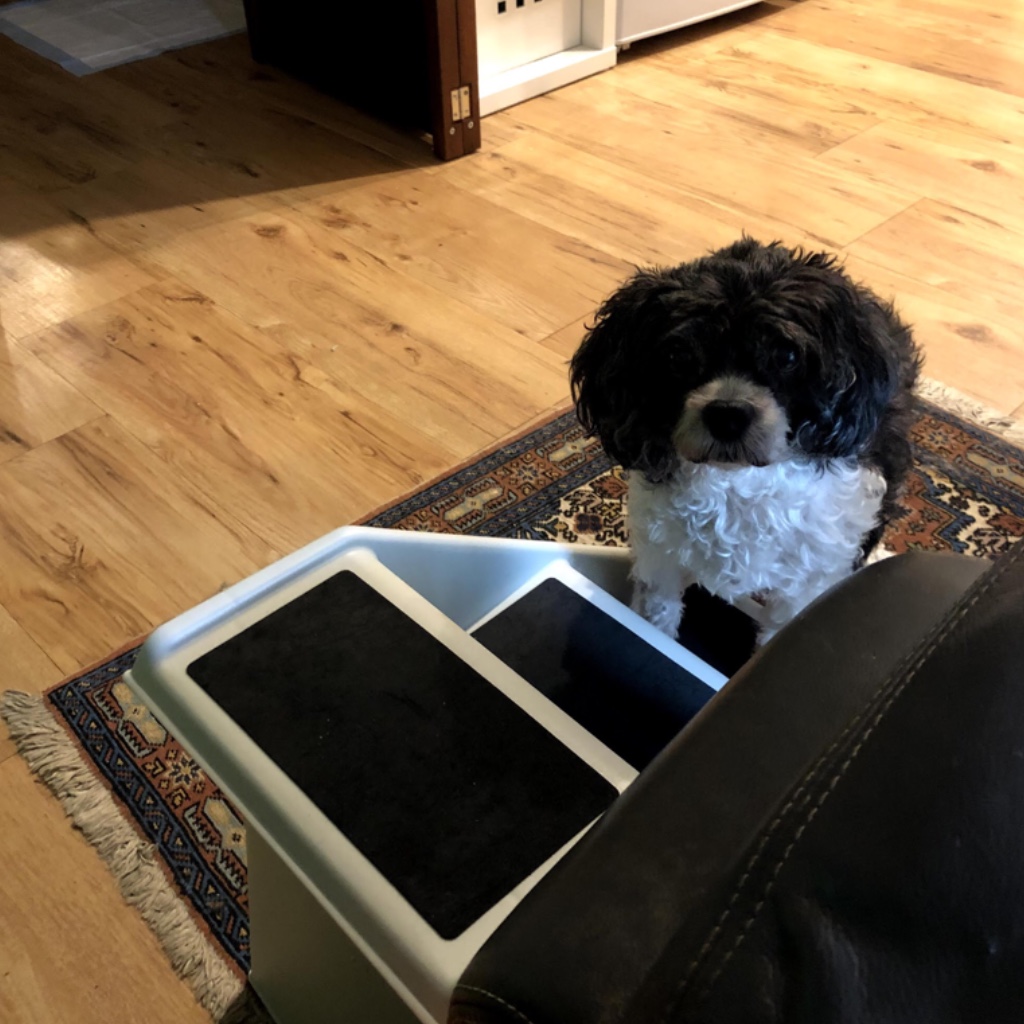 Daisy’s spirit showed through though in mischief like scoffing up Millie’s food at any opportunity. Her morning delight was getting the dried up leftover scraps from Millie’s bowl at breakfast time. The little dance she did when breakfast was announced was a joy to watch. In days long gone, this same dance was executed when an outside walk was obvious from the appearance of the walking harness. The last short walk we had together was a very slow process and the relief shown when we arrived back home convinced me that the walking days were done.