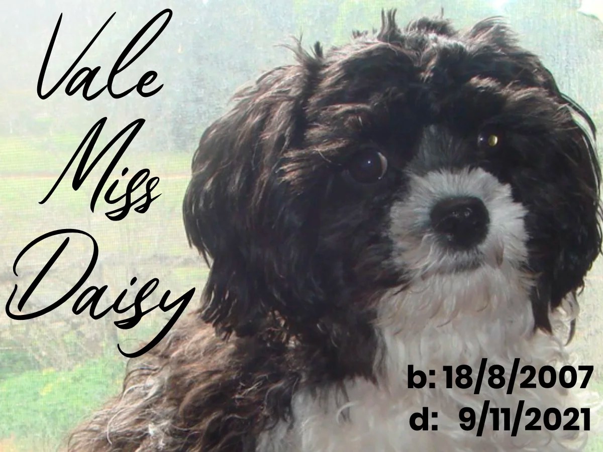 We will probably not get another dog as our advanced age means that we may have to pass on before it would. I also no longer have the energy to be able to provide the sort of exercise a growing pup would require. It makes the loss of our dear Miss Daisy even more poignant. If Miss Daisy were to be the last dog we would share our life with then we could have not asked nor wished for a more loving, sweet natured, intelligent, adorable dog than her.