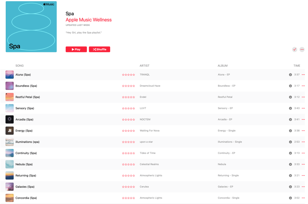 I am an unashamedly Apple nut and subscribe to Apple Music for its amazing choice of playlists. When I am writing I usually prefer the Spa playlist, see image below, because it is not intrusive but provides a nice filter to block out background noises like my wife’s phone conversations. I don’t like vocals either while I am writing as that can get very confusing with other words coming into my consciousness.